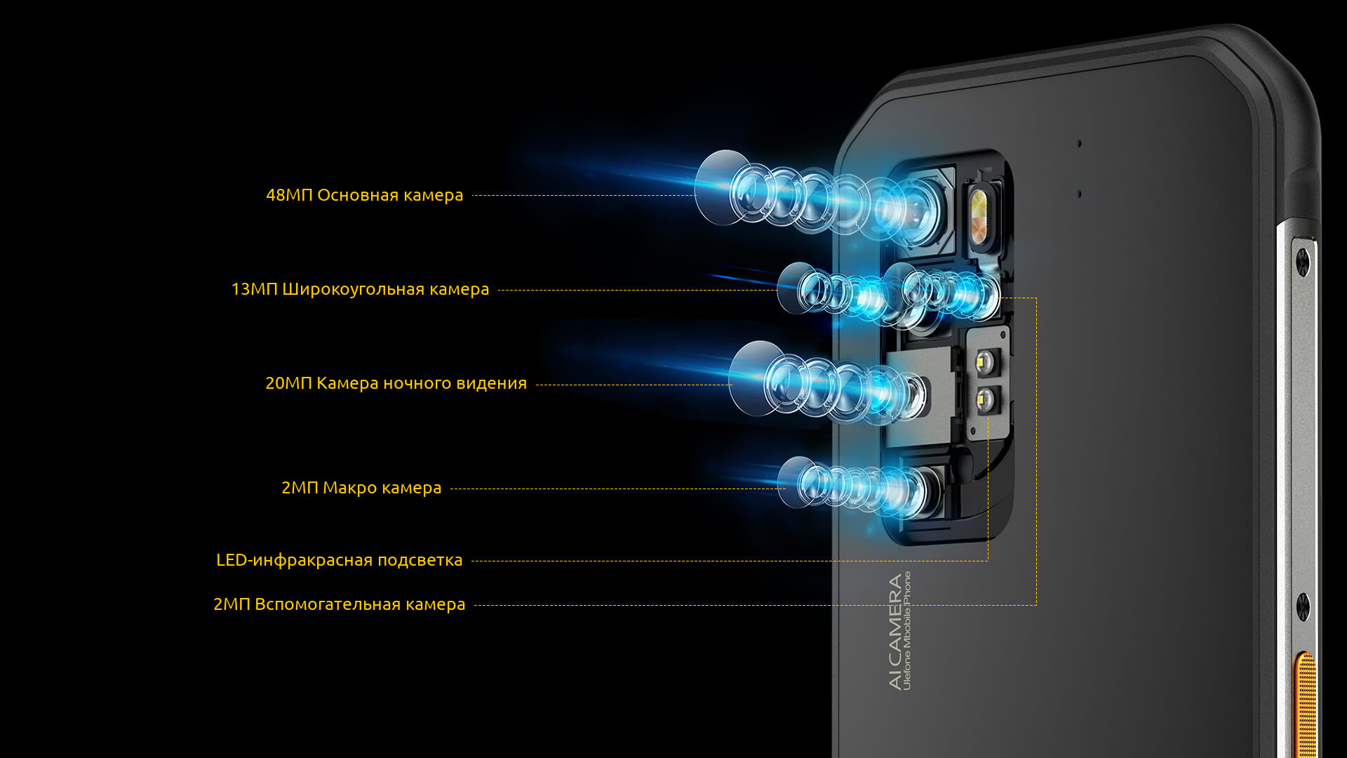 В Ulefone Armor 11 5G установлена 20Мп ночная камера с двумя ИК-светодиодами. Она позволяет делать фото и записывать видео в полной темноте. ИК-подсветка не видна глазу и никак не мешает съёмке. Если Вы хотите увидеть, что происходит в ночном лесу, то Armor 11 это то, что Вам нужно.