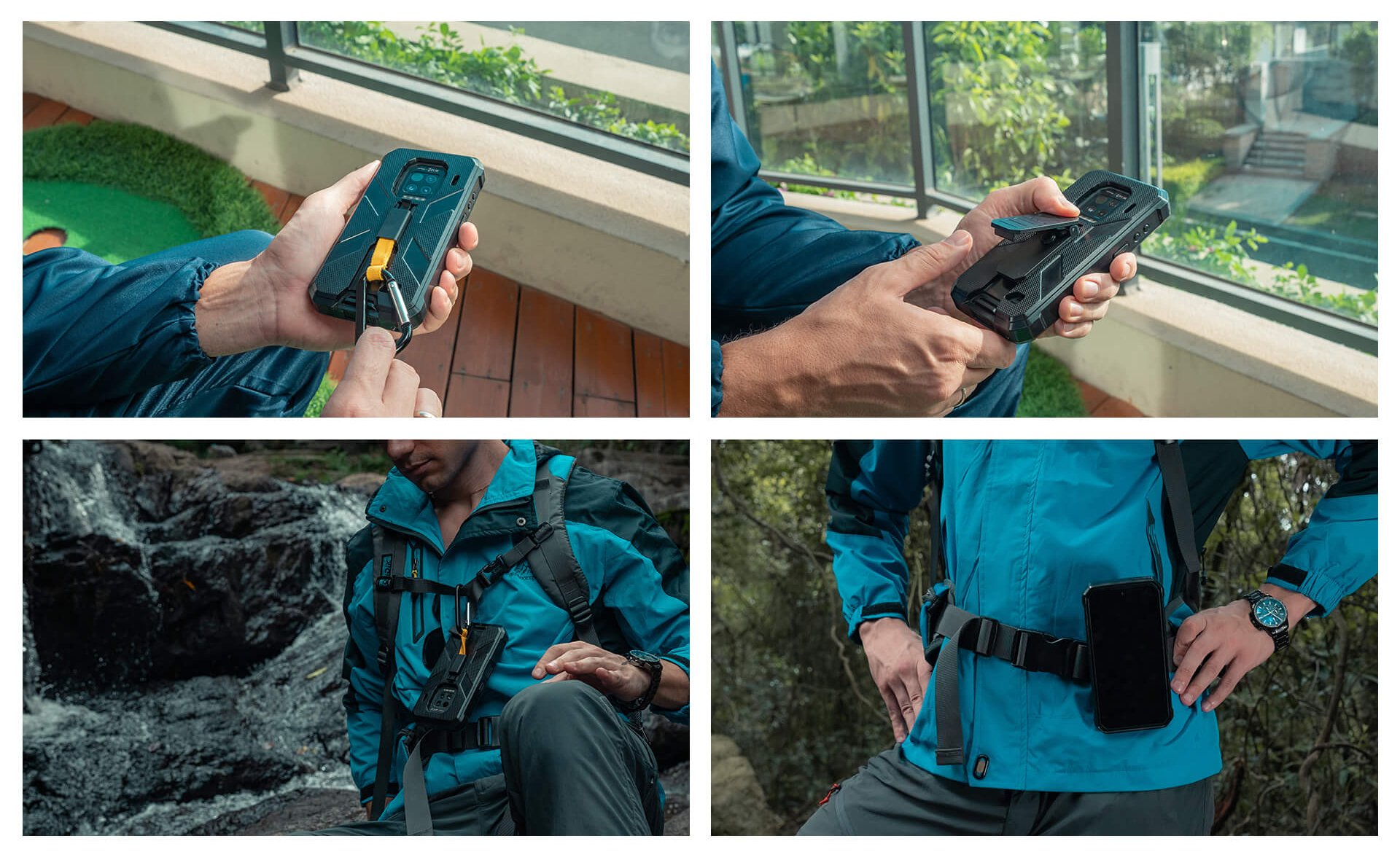 На задней панели присутствует петля под темляк, а при помощи чехла-накладки, можно прикрепить карабин. Нарукавник позволяет надёжно закрепить смартфон на запястье или предплечье. Автодержатель позволяет надёжно закрепить смартфон, как на панели автомобиля, так и на велосипеде.