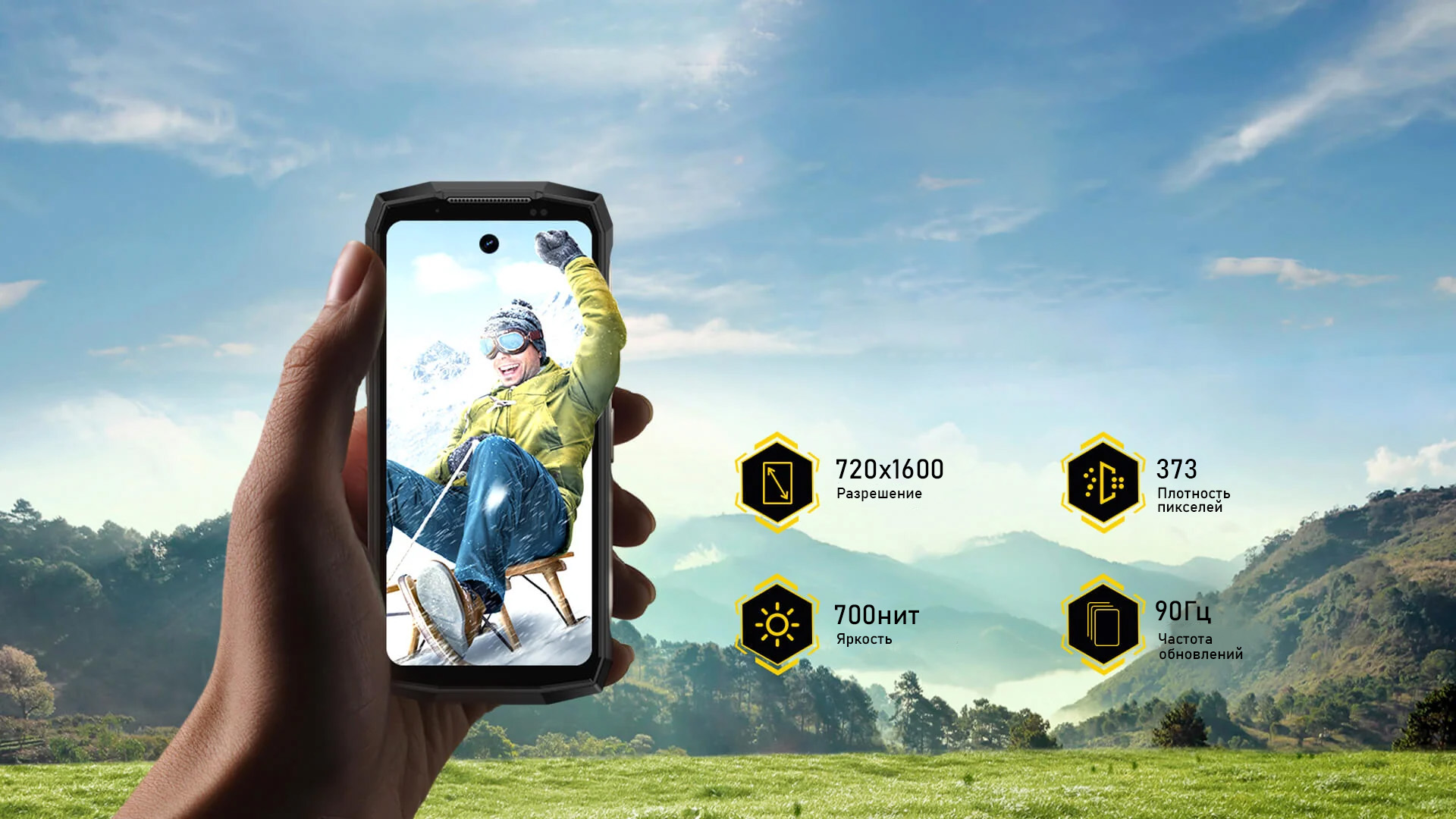 Маленький корпус, высокая автономность. Небольшой экран, но большой аккумулятор ёмкостью 6200мАч. Выдерживает экстремальные температуры до -30°. Лучшее решение для приключений на свежем воздухе.