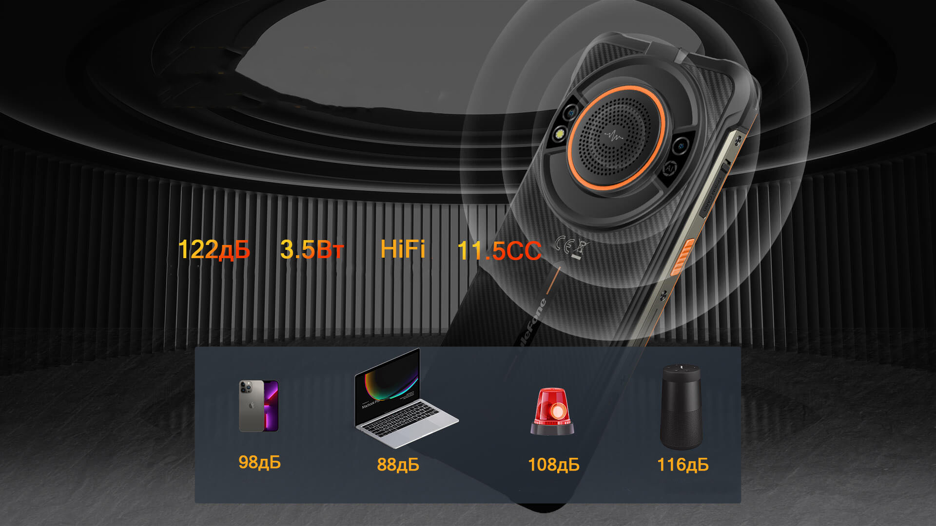 | Громкость динамика 122дБ | Громкость динамика 122дБ |