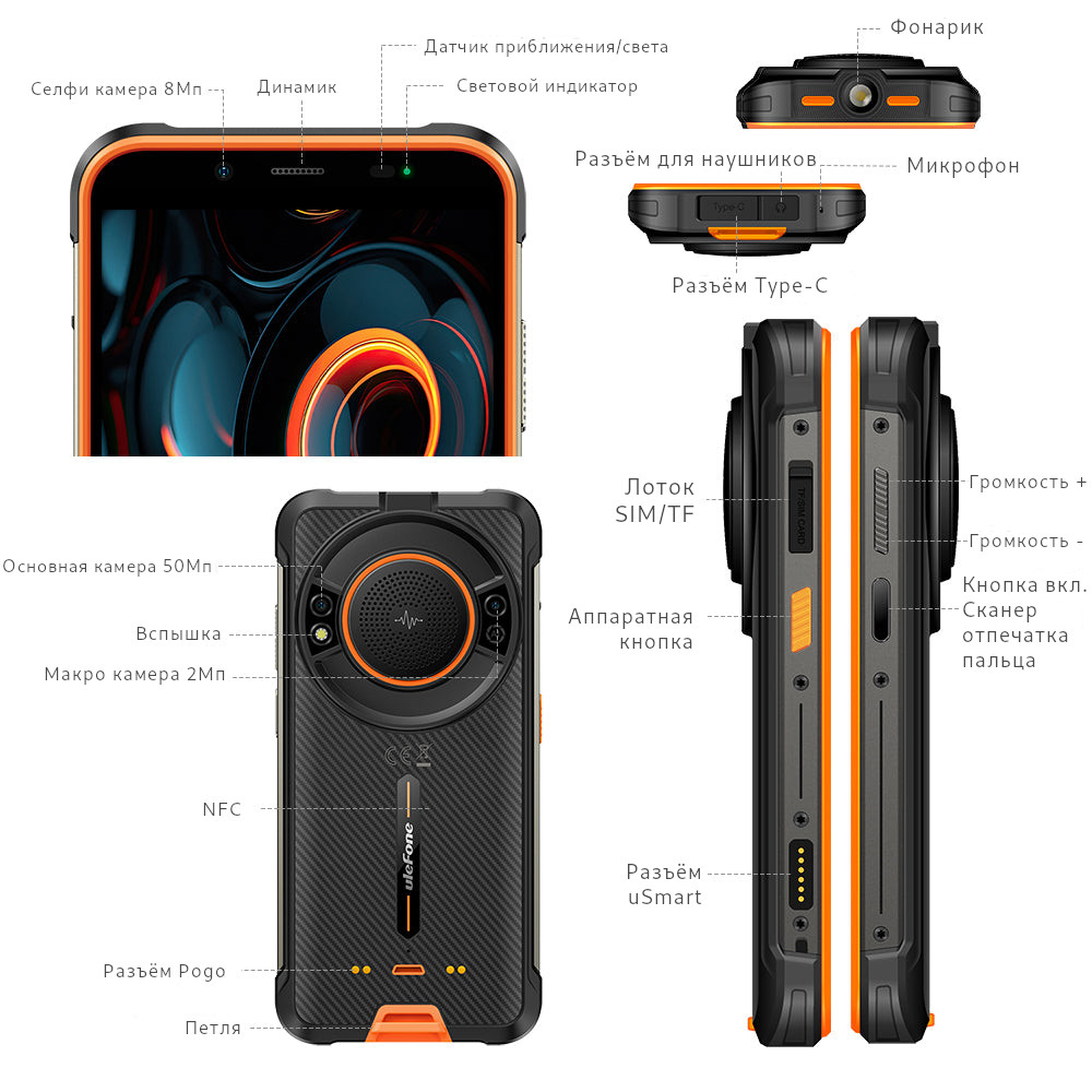 Предыдущие характеристики являются теоретическими значениями, основанными на конструкции продукта. Некоторые функции и технические характеристики могут различаться в зависимости от рынка. Для предоставления точной информации о продукте, технических характеристик и функций Ulefone может в режиме реального времени вносить коррективы в предыдущие спецификации, чтобы они соответствовали производительности продукта, спецификациям, индексам и компонентам фактического продукта. Информация о продукте может быть изменена и дополнена без предварительного уведомления.